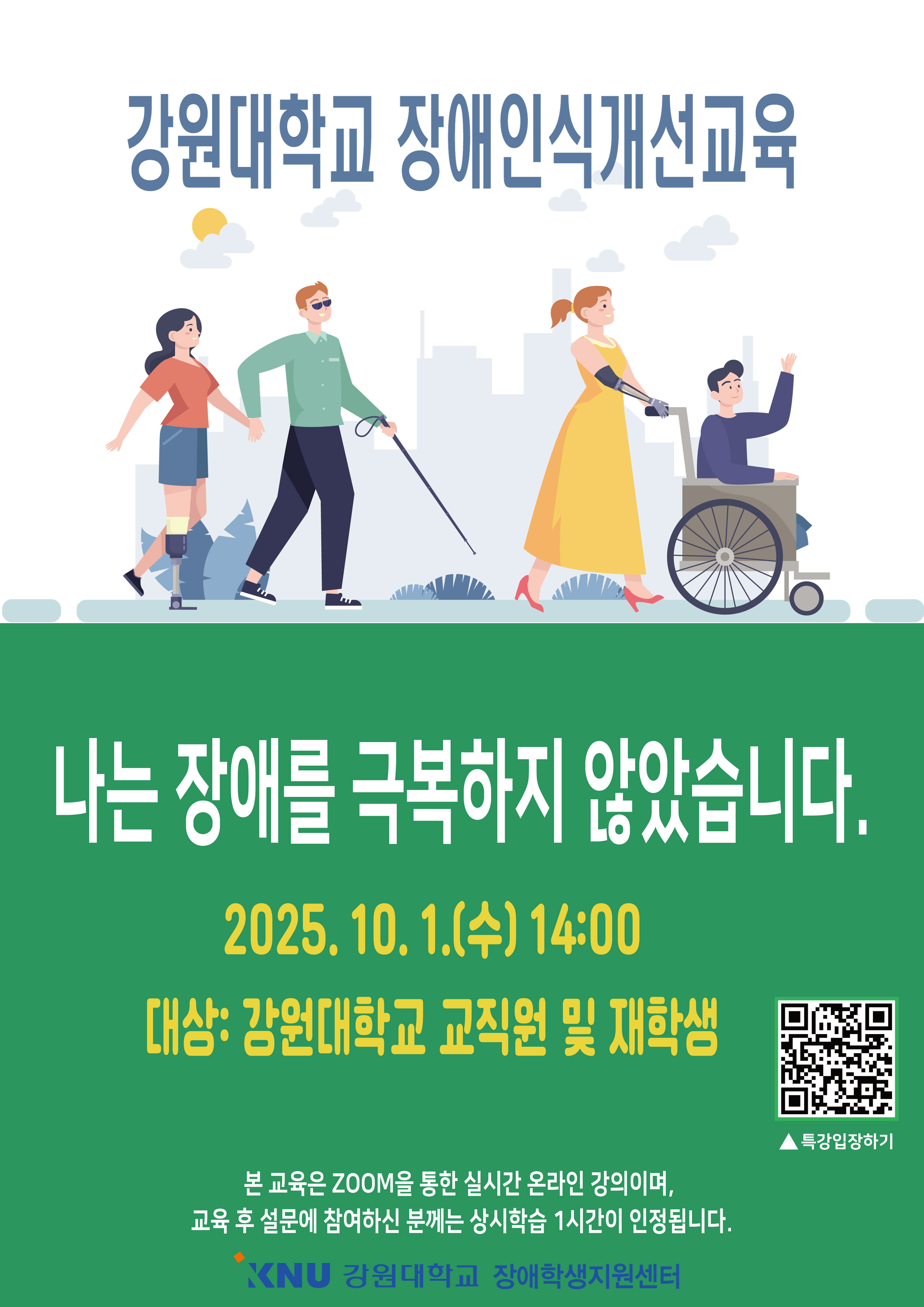[장애학생지원센터]『나는 장애를 극복하지 않았습니다』온라인 교육 진행 안내